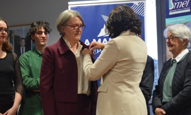 Ce jeudi 29 février, Valérie NOUVEL, Vice-Présidente du conseil départemental de la Manche et Chevalier de l’Ordre National du Mérite a remis l’insigne de Chevalier dans l’ordre national du Mérite à notre collègue Laurence HEGRON-MACE, Responsable du pôle pêche maritime au SMEL.