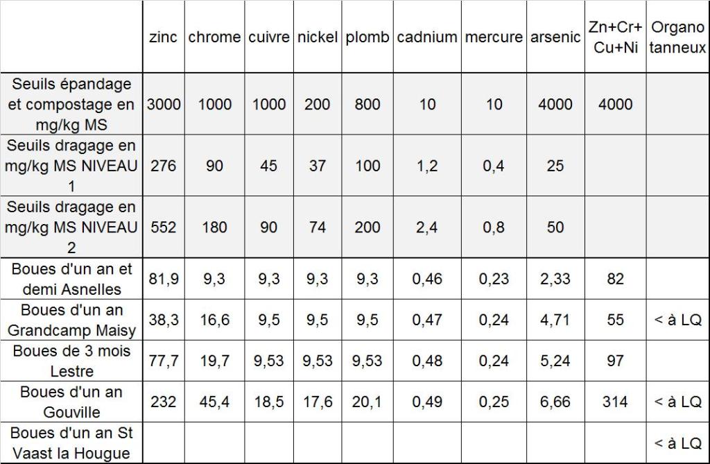 Des concentrations en éléments traces métalliques et organiques en dessous des seuils exigés par la réglementation