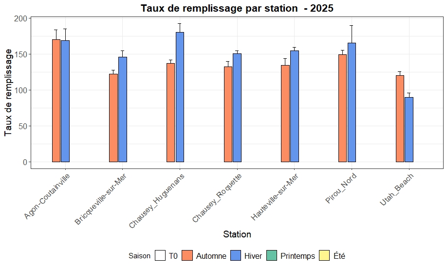 Production sur pieux (moyennes régionales des 7 sites)