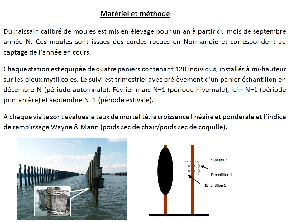 - Suivi de la productivité standard: méthodologie permettant de visualiser les mortalités et croissances saisonnières des différents écosystèmes mytilicoles