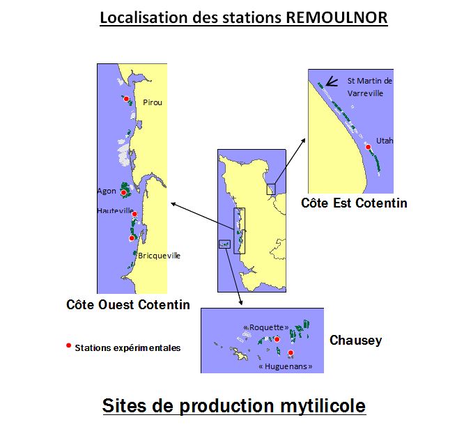 Mis en place à partir de 2002, le réseau REMOULNOR a pour vocation d’apporter des informations sur la productivité mytilicole dans la Manche. Il est composé de 7 stations réparties dans chaque grand secteur de production mytilicole.