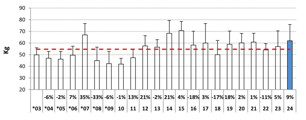 - Suivi de production sur pieux : Poids brut et net produit sur un cycle, caractérisation des moules commercialisables