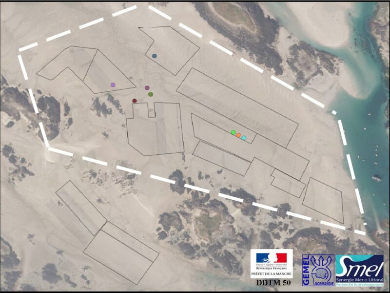 Grâce à la participation des professionnels et avec le concours du GEMEL-Normandie, la localisation exacte et les densités des Lanices ont été évaluées au cours du printemps dernier sur la zone d’étude. Ainsi, chaque parcelle abritant les différentes classes d’âge de palourdes ainsi qu’une zone hors élevage ont pu être étudiées afin d’établir l’état des lieux initial des populations du vers tubicole.