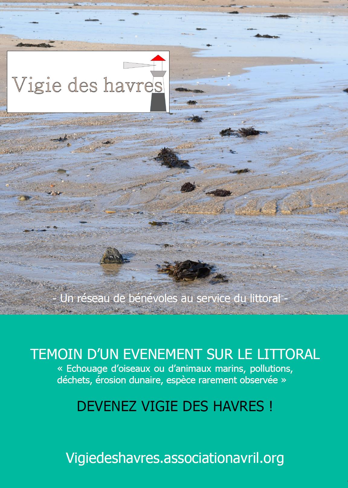 Dans le cadre du programme d’étude «Reconstitution d’un stock de bivalves, mise en place d’indicateurs de stocks et de Vigie des Havres » (RS2S) mené par le SMEL, l’association AVRIL a mis en place un site internet permettant de recenser les événements de notre littoral de la côte des havres (Cotentin, Manche). Ainsi, si vous êtes témoin d’un événement sur le littoral « échouage d’oiseaux ou d’animaux marins, pollutions, déchets, érosion dunaire, espèce rarement observée… », déposez votre témoignage avec une photo sur le site Vigiedeshavres.associationavril.org.