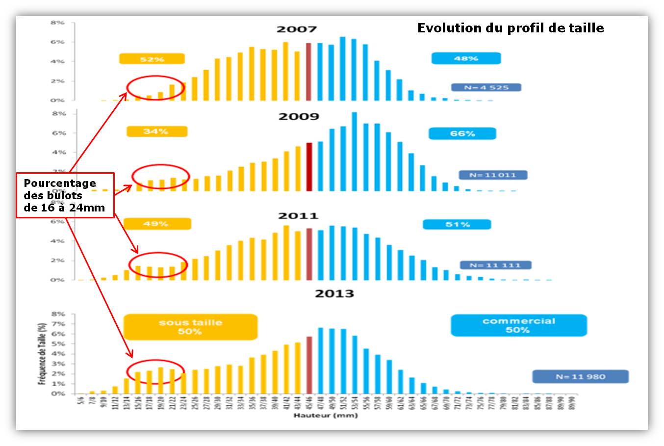 L’augmentation du nombre de petits bulots témoigne d’un recrutement futur favorable (cf. graphique ci-dessous).