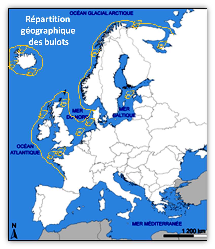 La pêche côtière est très dynamique dans l’ouest Cotentin et notamment pour certaines espèces emblématiques dont le bulot, gastéropode d’eau froide vivant dans une large zone de l’arctique à l’Atlantique nord. Mais voilà, les zones de pêches les plus importantes sont situées tout au sud de cette large zone: c’est la limite sud de répartition géographique de l’espèce (cf. carte ci contre).
