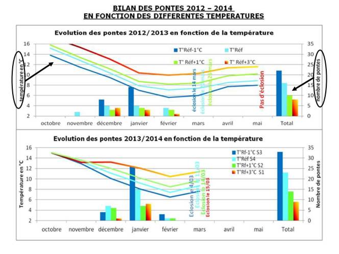 Ces résultats montrent l’influence directe de la température sur la reproduction. Et par conséquent l’effet perturbant des températures plus élevées sur les pontes.