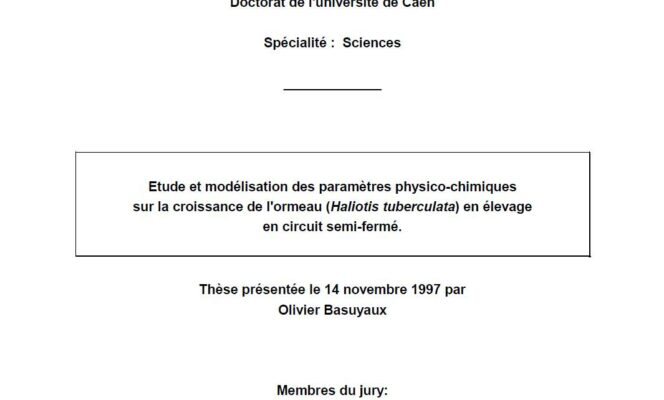 Etude et modélisation des paramètres physico-chimiques sur la croissance de l’ormeau (Haliotis tuberculata) en élevage en circuit semi-fermé.