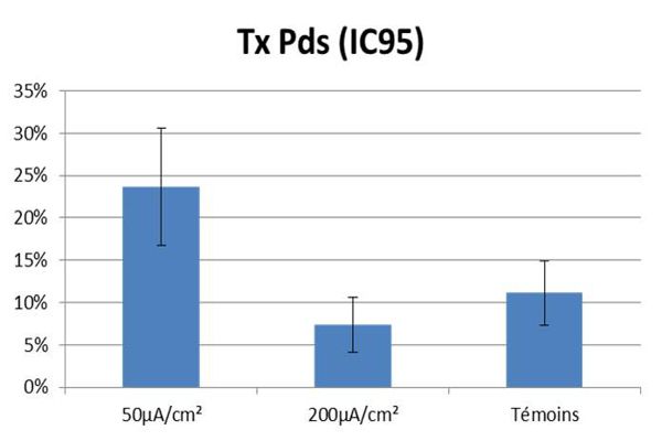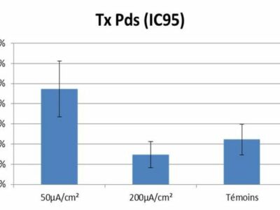 En conclusion, cette technique peut être bénéfique mais, d’un point de vue chimique, demande à être mieux maitrisée. Il semble que le rapport densité d’individus – taille de la cathode, semble être prédominant pour pouvoir tirer tous les avantages d’un apport de l’électrochimie de l’eau de mer.