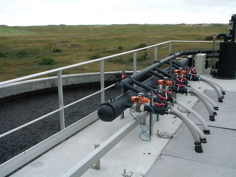 Cette phase de recherche suivie d’une phase de développement et d’application ont permis d’envisager, dès l’année 2000, la construction d’une station d’épuration traitant les rejets de la zone d’activité Logimer de Bréville-sur-Mer dans le département de la Manche (50). Les concertations ont abouti en 2001 à la construction d’une station d’une capacité de 8000 eq./hab. qui fonctionne 7j/7j, apte à traiter un flux de 2000 m3 par semaine, en s’adaptant à la saisonnalité des produits de la mer et aux différents rythmes d’activité journaliers. Le montant de l’investissement est d’environ 2 millions d’euros.