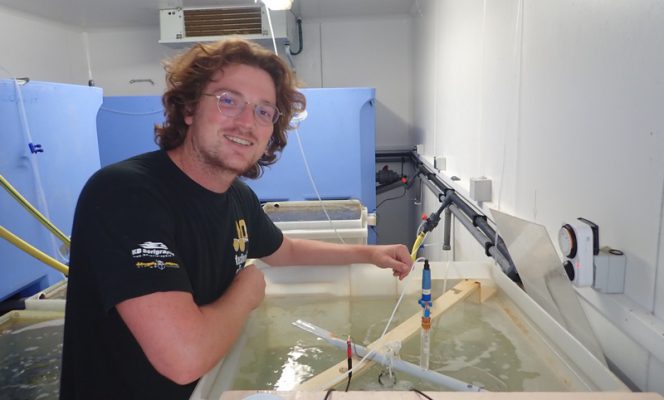 Au sein programme ANODE sur l’évaluation des effets potentiels des anodes galvaniques en aluminium en milieu marin, mené dans la cadre d’une thèse de doctorat par Alexandre Levallois à l’Université de Caen (Laboratoire BOREA), des expérimentations seront réalisées au centre expérimental du SMEL à Blainville sur mer. L’évaluation des effets biologiques sur les huîtres sera observée durant une exposition de 3 mois aux produits de dégradation d’une anode galvanique en aluminium à différentes concentrations. Antoine Laisney, étudiant en Master 2 Aquacaen a rejoint l’équipe du SMEL pour son stage de fin d’étude de 5 mois. Il a en charge le suivi de l’expérimentation sur les huîtres ainsi que sur quelques espèces d’algues (laminaire, palmaria, ulve). L’ensemble des expérimentations est réalisé avec le soutien financier de l’Agence de l’Eau Seine Normandie.
