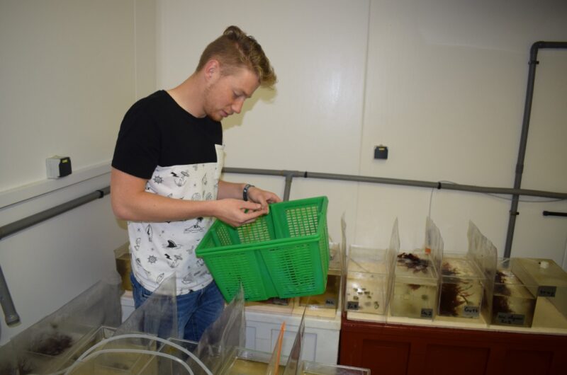 Thomas Lemaitre, étudiant en dernière année de la formation « Cadre Technique Génie de l’environnement marin » au CNAM Intechmer a rejoint l’équipe du SMEL pour 4 mois et demi. Il travaillera sur à la mise en œuvre de tests éco-toxicologique sur les métaux en utilisant différentes techniques. Ainsi, les techniciens du SMEL mettent en œuvre leur expérience de plus de vingt ans dans les élevages des mollusques et d’echinodermes afin de mieux cerner les seuils de effets des métaux sur l’environnement. L’une de ces techniques consiste à exposer des ormeaux à différentes solutions de sels métalliques et d’observer les effets sur la croissance et la mortalité. Des résultats très attendus par les industriels régionaux.
