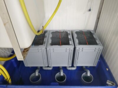 Pour mener à bien ce projet, de nouvelles structures d’élevage en milieu contrôlé ont vu le jour … mais cette fois-ci, il s’agit bien d’eau douce et non d’eau de mer milieu de prédilection du SMEL jusqu’à présent. Le SMEL a créé cinq modules de conditionnement pour lesquels les facteurs externes tels que la température et la photopériode sont maitrisables.