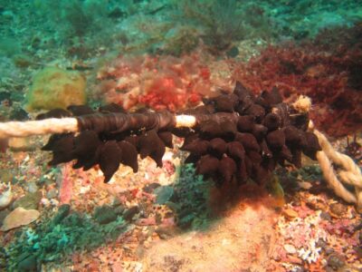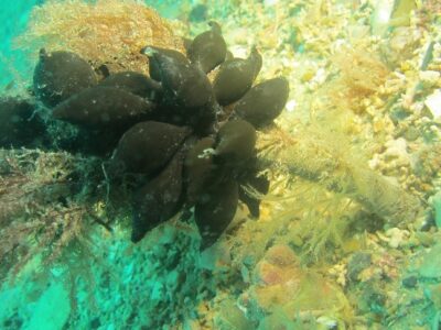 Les suivis des pontes de seiche, effectués par le SMEL, donnent des résultats qui confortent les observations précédentes. Les seiches pondent leurs œufs à partir du mois d’avril sur des supports naturels (vers, cnidaires, algues…) ou non (cordes, casiers…). Ainsi, il est possible d’évaluer les quantités d’œufs pondus afin d’obtenir une évolution sur le long terme. Depuis 2012, le SMEL dispose deux séries de collecteurs composés de 30 orins (cordelettes d’1 m) sur les sites de la pointe d’Agon (Manche) et de Luc-sur-mer (Calvados). D’autre part, 6 plongées d’observations sont réalisées chaque année fin juin/début juillet pour compter les œufs sur les supports naturels face à Agon-Coutainville. Ces indicateurs peuvent être comparés aux captures. Les quantités d’œufs les plus importantes ont été observées en 2012, année dont les conditions environnementales étaient propice à une longue période de ponte, ce qui peut être corrélé au pic de captures observé cette année-là dans la Manche. Les données 2015 montrent de très faibles quantités d’œufs pondus, en particulier sur le site de la pointe d’Agon sur les supports artificiels. En 2017, aucun œuf n’a été observé sur les supports naturels et très peu sur les orins de Luc-sur-mer ; ce résultat étant corrélé à de très faibles captures sur la façade ouest du Cotentin alors que 2017 a été marquée par de fortes captures dans la Manche.