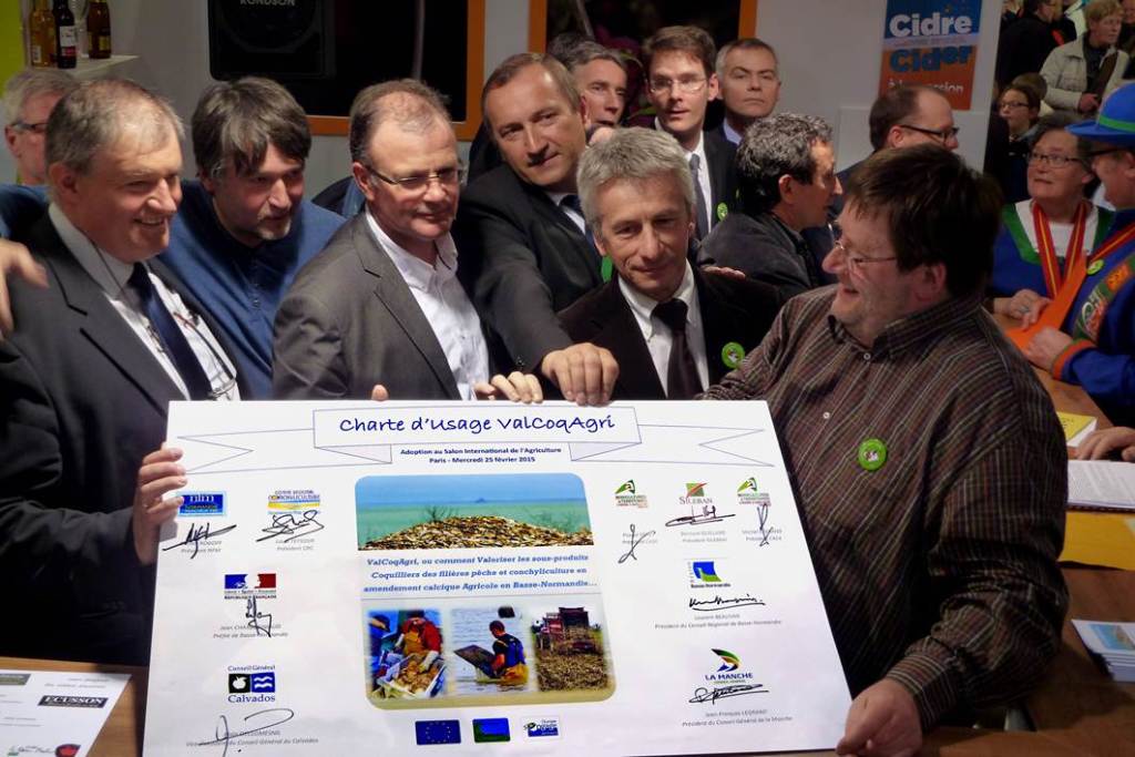 Un partenariat entre professionnels : Le 9 mars 2015, pêcheurs, conchyliculteurs et agriculteurs normands signaient la charte de VALorisation des COQuillages en AGRIculture (VALCOQAGRI), piloté par Normandie Fraîcheur Mer (NFM).