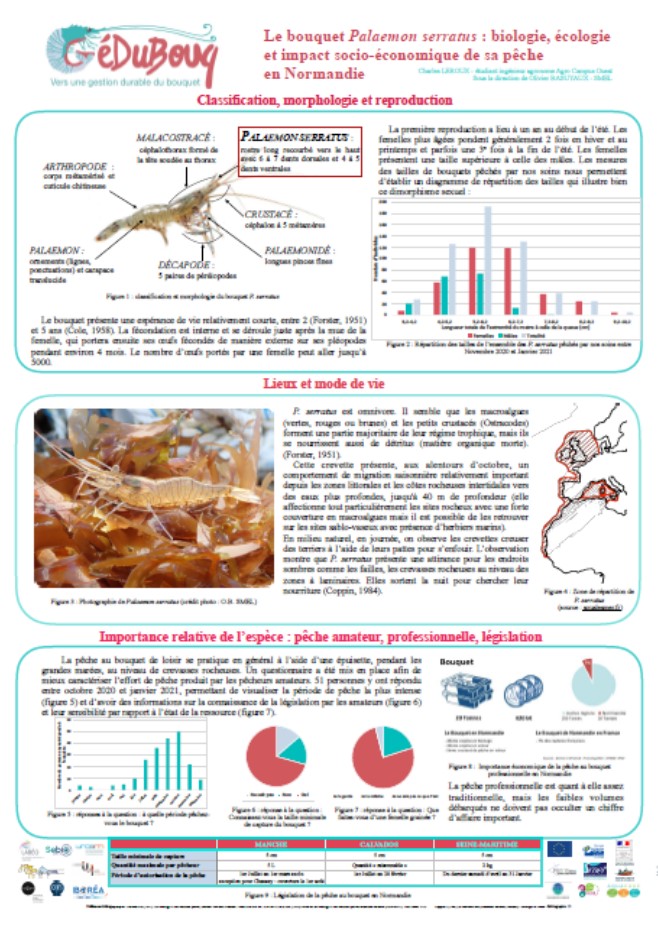Mais depuis une vingtaine d’années, une baisse importante des rendements de pêche de cette espèce est observée (enquête CRP, 2002). Plus récemment, les pêcheurs exerçant leur activité dans les Iles Chausey ont observé une diminution de la taille des crevettes et des quantités pêchées. D’autre part, la pêche à pied aux bouquets par les amateurs représente un enjeu économique et culturel important pour la Normandie. Fort de ces constats, une étude préliminaire a été menée sur cette espèce et les pratiques de pêche. Cette étude a été réalisée en 2019 à partir de la bibliographie et d’une enquête auprès de 164 pratiquants de l’ensemble des côtes de la Manche et du Calvados. Elle a permis d’établir deux constats :