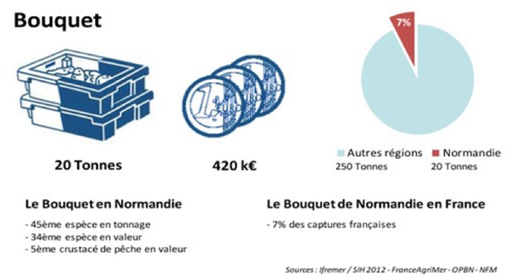 Pêché sur l’ensemble des côtes rocheuses de Normandie, le bouquet (Palaemon serratus) est en passe de devenir un emblème pour la Normandie. Quelques dizaines de pêcheurs professionnels exercent traditionnellement cette activité de manière saisonnière (entre août et février) sur l’ensemble du littoral de la Manche, du Calvados et de la Seine Maritime.