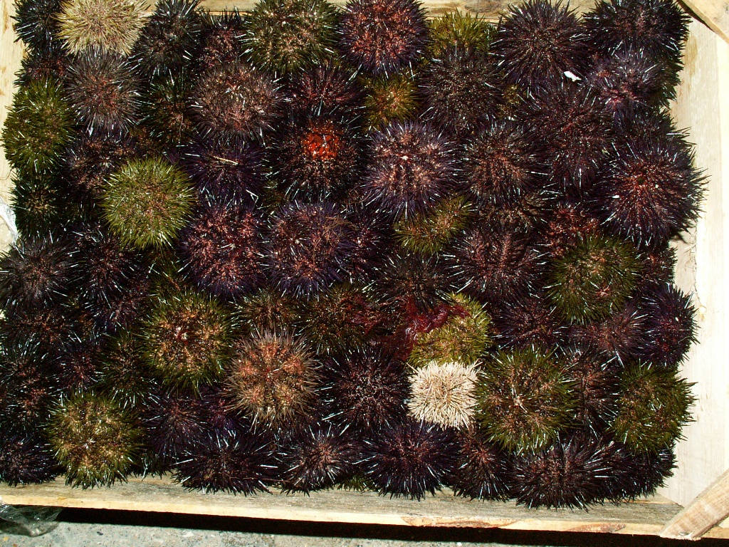 Les coûts de production ne permettent pas aujourd’hui de rivaliser avec les prix de vente des oursins péchés en mer. En effet, avec des tarifs relevés à moins de 10€ le kilo parvenu en France (photo ci-dessus), l’oursin pêché en Espagne est trois à quatre fois moins cher que ce qui peut être proposé en élevage. Néanmoins, en diversification d’autres élevages, pour des petites quantités dans des secteurs de niches (recherche, éducation…) l’élevage présente un intérêt majeur de produire des géniteurs d’excellente qualité toute l’année et de fournir des petites quantités normalisées (photo ci-dessous).