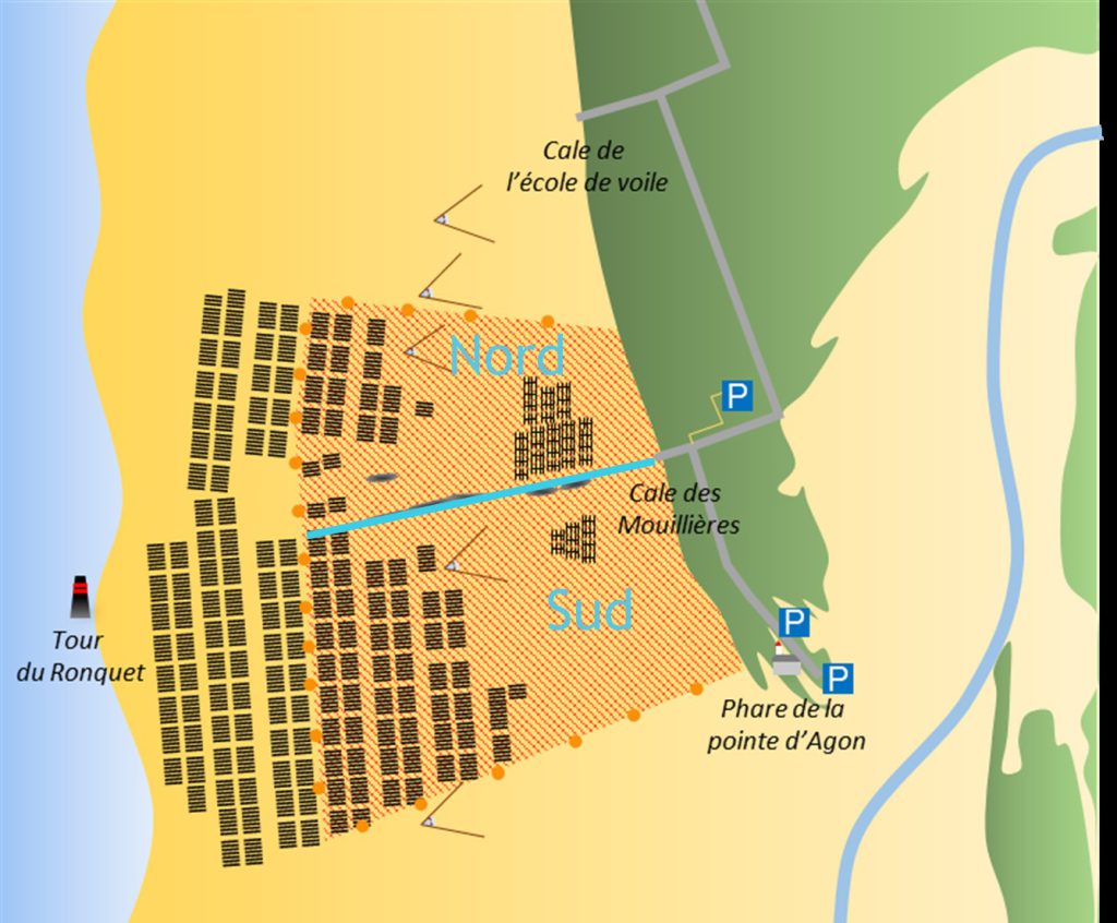 – Réouverture uniquement de la partie au Nord de la cale des moulières (la partie sud restant fermée complètement),