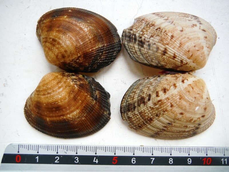 Photo 4 : Palourde japonaise (Ruditapes philippinarum) et Palourde européenne (Ruditapes decussatus)