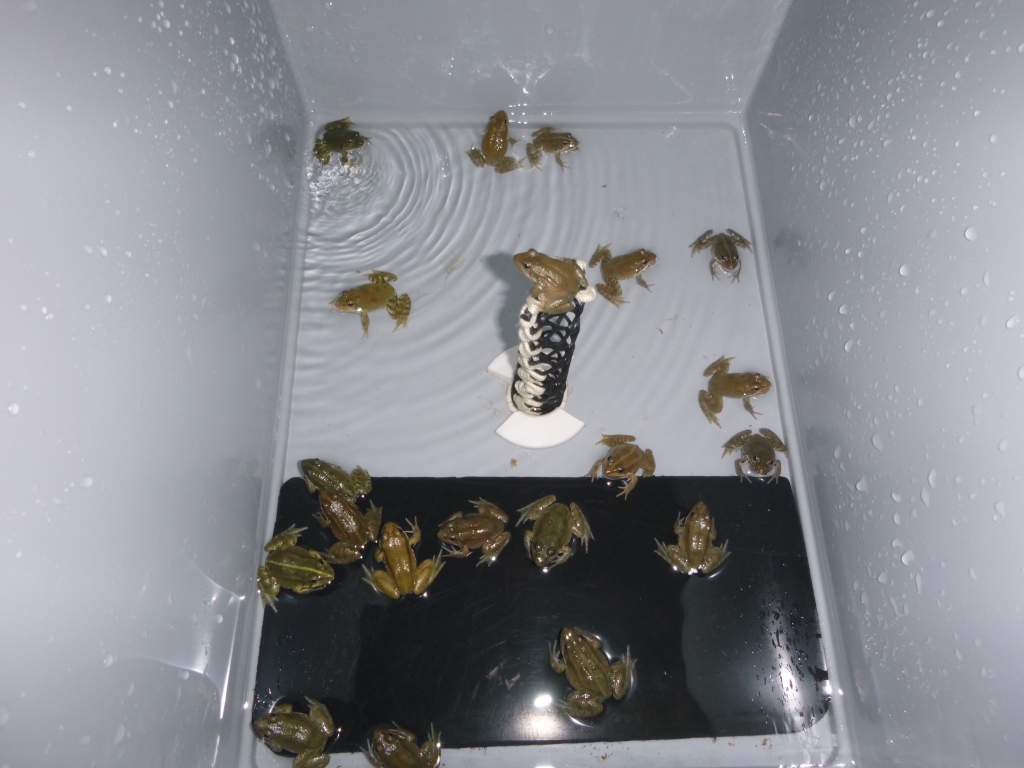 Dans le cadre du programme KERMIT (projet d’accompagnement de la raniculture normande), porté par le SMEL et cofinancé par le conseil régional de Normandie et départemental de la Manche, un nouveau plateau technique a été élaboré au centre expérimental pour accueillir les expérimentations zootechniques sur les grenouilles. Les premières structures ayant été validées techniquement, le premier lot de grenouille est arrivé au centre expérimental. Composé d’une soixantaine de grenouillettes de 4 à 5 g, ce lot pionnier a pour objectif de valider le procédé expérimental imaginé au SMEL pour ensuite mener à bien les expérimentations zootechniques au printemps prochain.