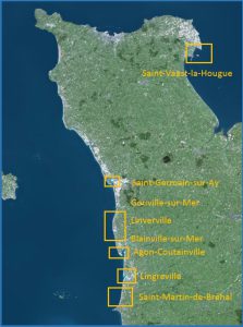 Ainsi, trois espèces de perceurs ont été observées, Nucella lapillus, Ocenebra erinaceus et Ocenebra inornata. Les deux premières sont des espèces autochtones alors que la troisième a été importée il y a une quinzaine d’années avec les transferts conchylicoles. Ces deux espèces représentent 99% des perceurs ramassés (respectivement 55 et 44%) alors que l’espèce importée ne représente que 1% de l’échantillonnage et ne semble donc pas avoir un caractère invasif. L’estimation montre une forte disparité spatiale entre les secteurs mais également à l’intérieur de chaque transect. Ocenebra inornata est principalement retrouvé à Gouville-sur-Mer et Saint-Martin-de-Bréhal mais il est aussi présent dans les autres secteurs à l’exception de la pointe d’Agon.