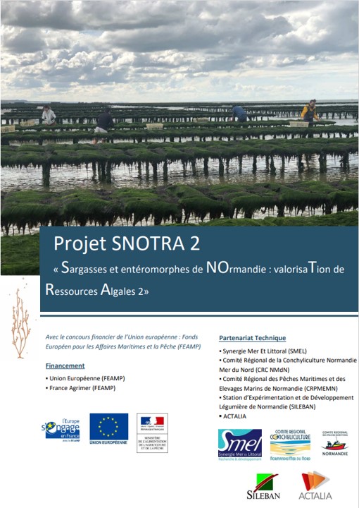 Avec le soutien financier de l’Union Européenne (dispositif FEAMP 2014 – 2020, mesure innovation pêche), ce projet s’est construit autour d’un partenariat normand constitué de Synergie Mer Et Littoral (SMEL), du Comité régional de la Conchyliculture Normandie Mer du Nord (CRC NMdN), le Comité Régional des Pêches Maritimes et des Élevages Marins de Normandie (CRPMEM N), du SILEBAN et d’ACTALIA. L’objet de cette étude est de compléter la connaissance sur l’exploitation et la valorisation, tant d’un point de vue technique, scientifique mais également réglementaire et économique de deux espèces d’algues bien différentes, la sargasse (Sargassum muticum), algue brune envahissante originaire du Japon qui envahit certains estrans de Normandie et les entéromorphes (Ulva sp.) présentes en grande quantité sur les poches à huîtres.