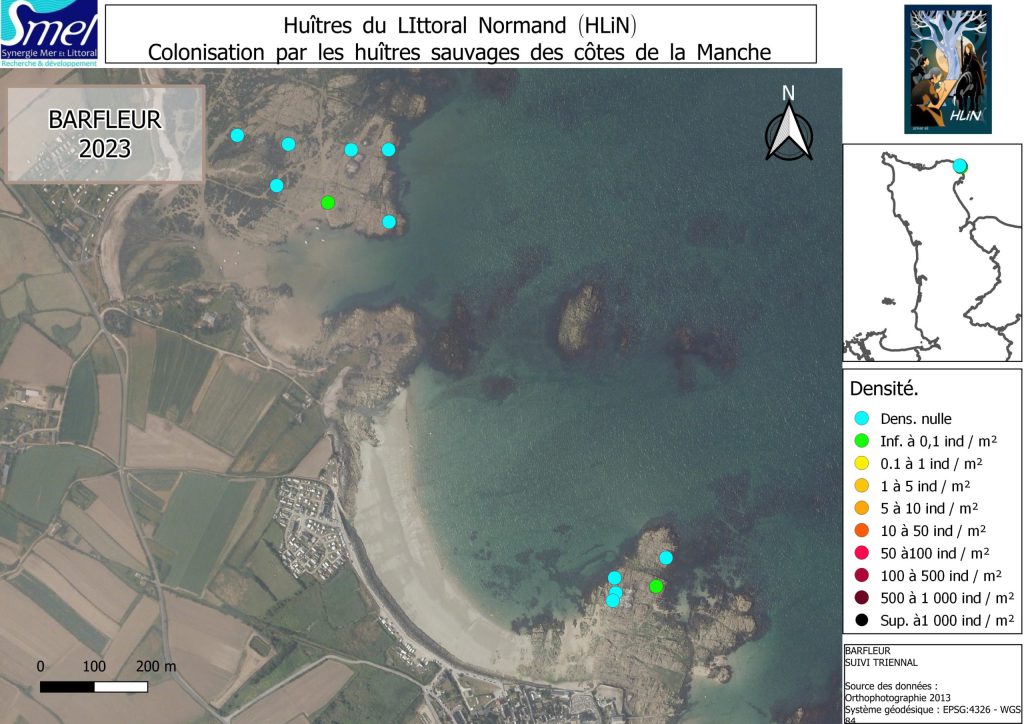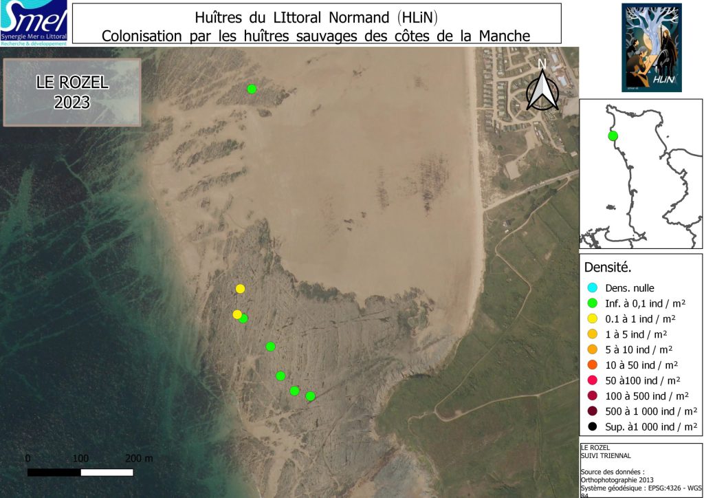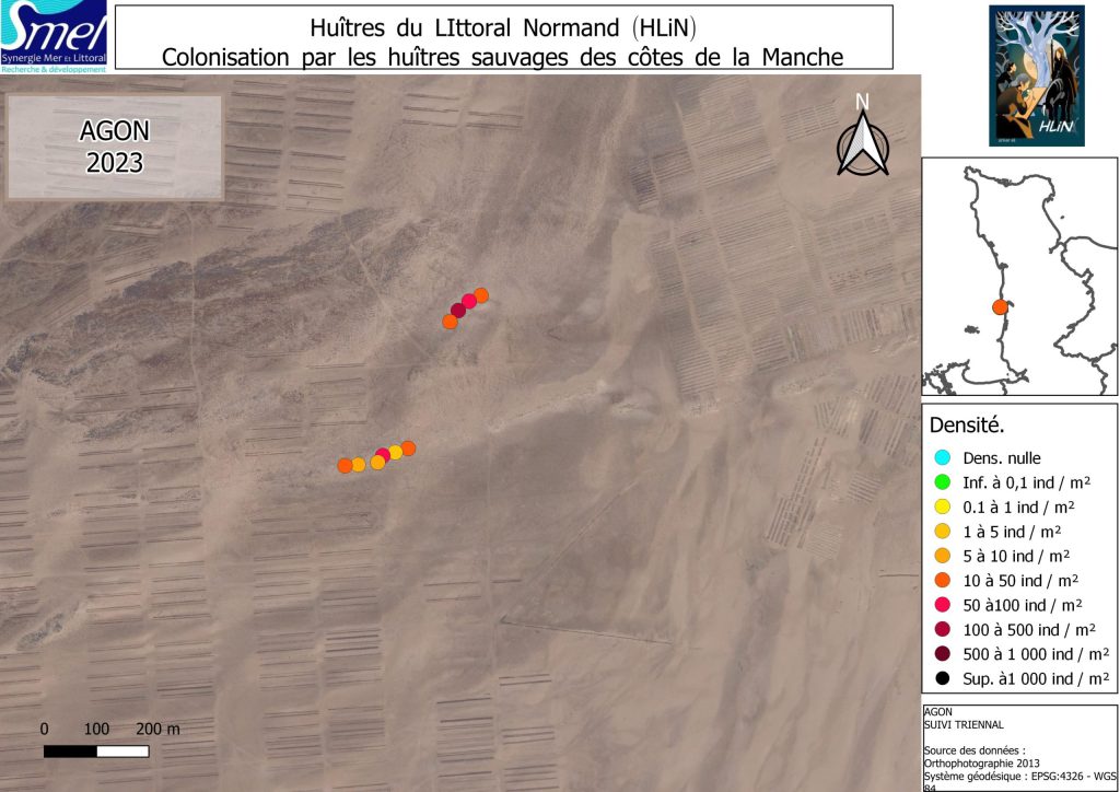 Il est à préciser que HLiN donne une tendance de l’évolution de la densité d’huîtres sur les estrans rocheux de Normandie et que les données représentent les valeurs relevées sur les points de suivis. En aucun cas, ces résultats ne donnent la densité de population sur l’ensemble d’un secteur.