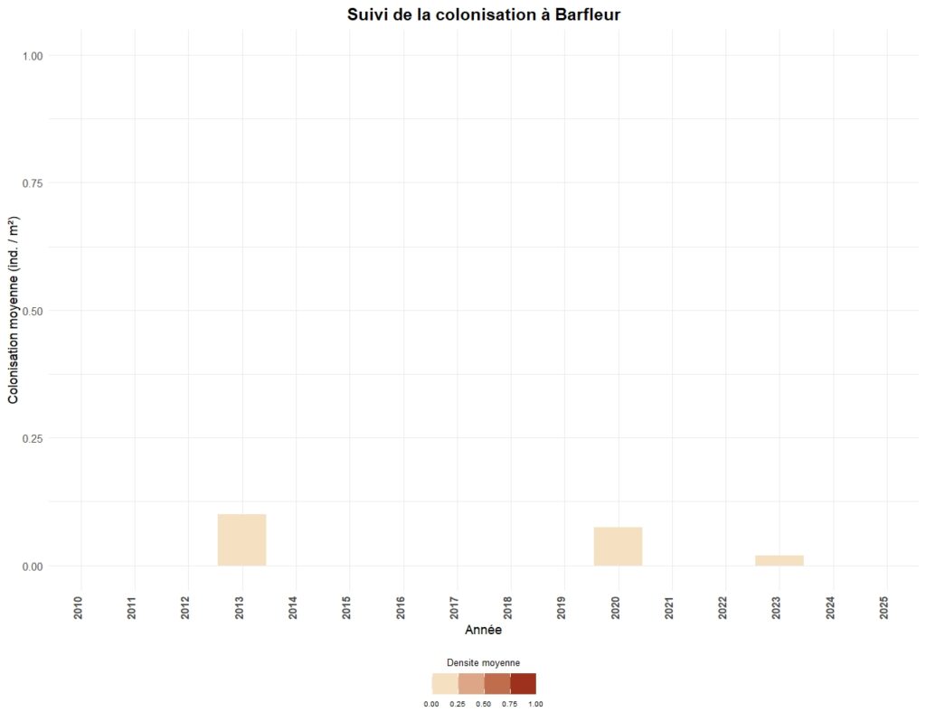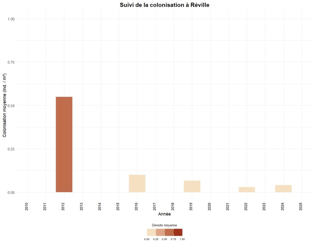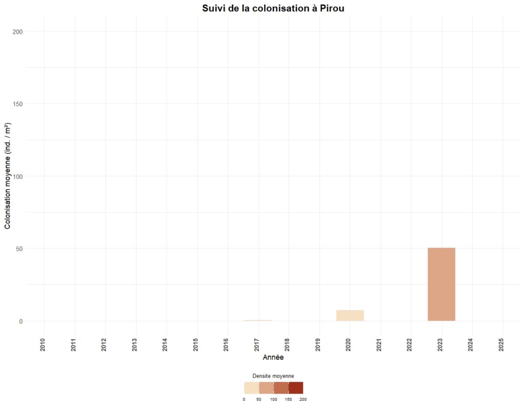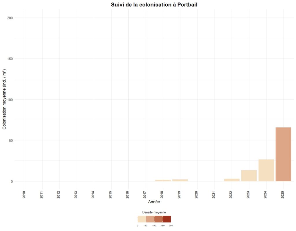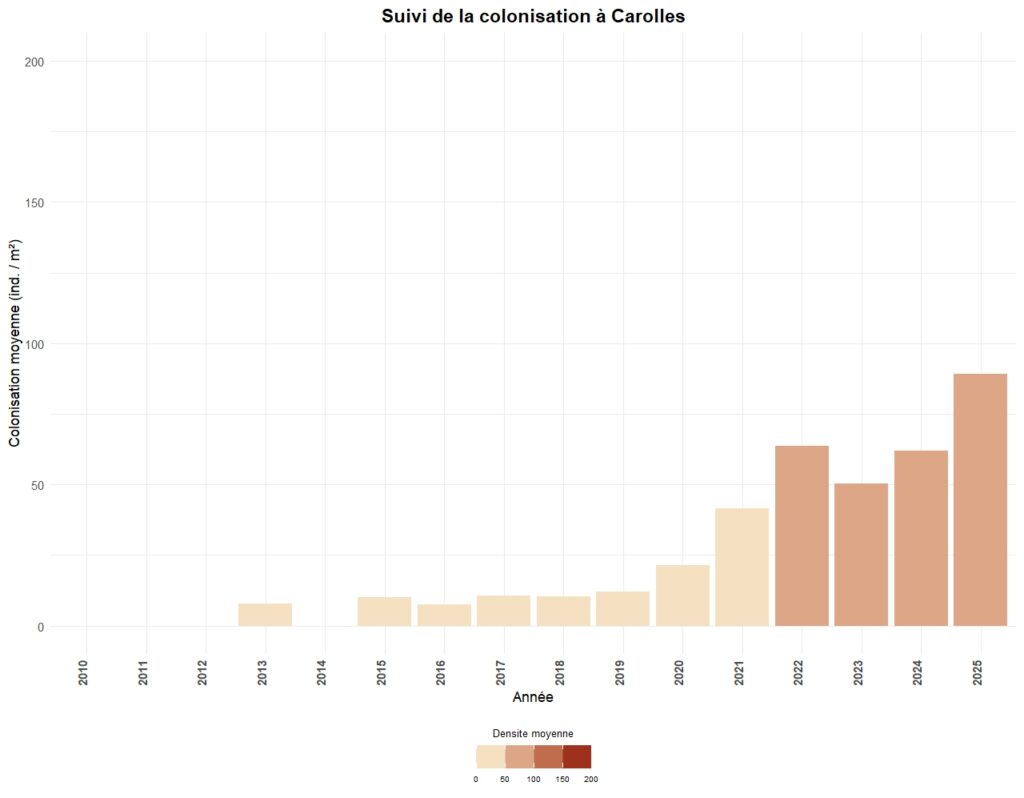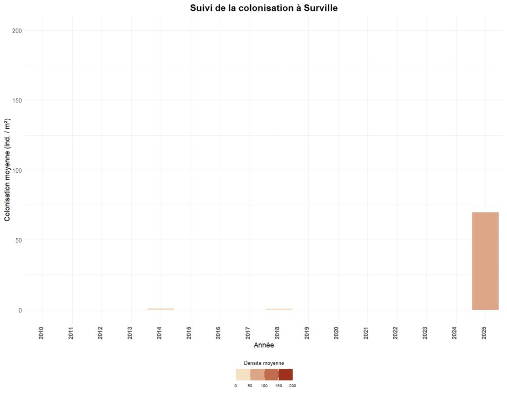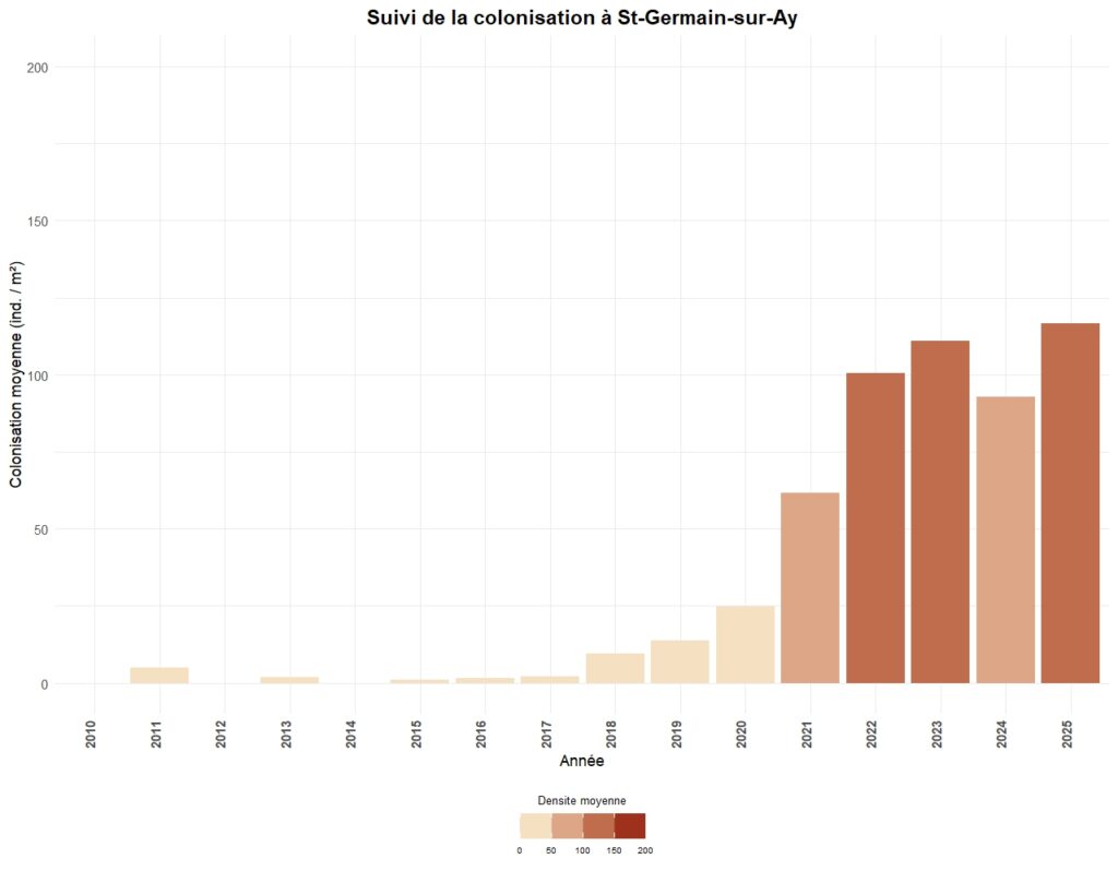 La colonisation est généralement suivi tous les trois ans sur chaque secteur, à l’exception de 5 sites suivis annuellement.