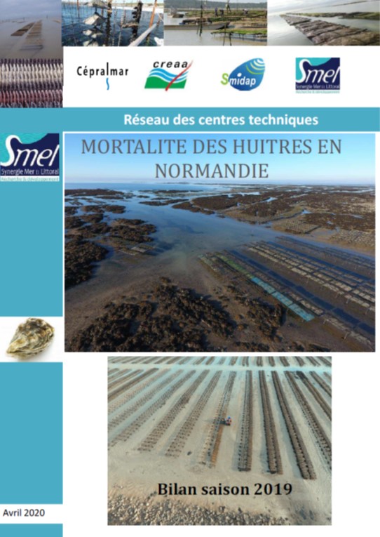 Depuis 2008, de nombreuses études ont été mises en place pour suivre le phénomène de mortalité des huîtres. Parmi ces suivis, les centres techniques ont mutualisé leurs efforts pour évaluer ce paramètre sur des cycles entiers d’élevage. Ainsi, en Normandie, le SMEL s’occupe de 2 sites d’élevages : Blainville-sur-Mer (côte Ouest Cotentin) et Saint Vaast-La-Hougue (côte Est Cotentin). La saison 2019 a présenté des variations de réponse notamment pour les lots de naissains mais toujours des taux de mortalités qui restent élevées sur la côte Est pour les huîtres adultes.