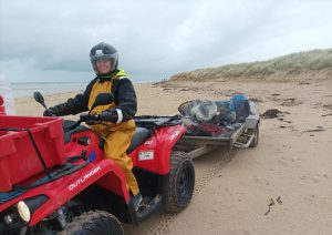 Malgré un temps capricieux, l’opération Nettoie ta plage, organisée par l’association Mauna Kéa, a bien eu lieu le dimanche 31 mars à la pointe d’Agon avec plus de 2 tonnes de déchets collectés. Cette année, ce sont essentiellement des poches à huîtres et des filets de protection mytilicoles qui ont été ramassés, déchets échoués sur les plages à la suite des dernières tempêtes. Comme tous les ans, le SMEL a apporté une aide logistique par la mise à disposition de deux agents ainsi que de moyens techniques terrestres (quads et remorques).