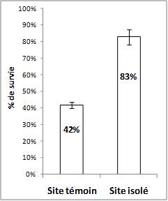 Le suivi a montré un différentiel important de survie en faveur du site isolé (Graph. 1). Aucune trace de virus n’a été retrouvée sur les huîtres isolées alors que sur parcs, le pic de mortalité observé coïncidait avec une présence avérée du virus OsHv-1, attestant de la contamination du lot au cours de la période à risque sur ce secteur.