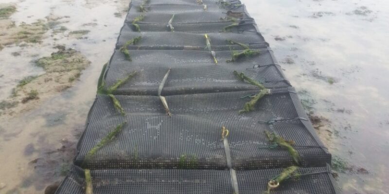 Un professionnel normand a initié un projet reposant sur ces principes en ayant accès à un site isolé dans le Calvados à Englesqueville la percée et en appliquant une zootechnie adaptée lui permettant l’élevage de son naissain en eau profonde. Comme le veut la procédure, une période d’expérimentation a été définie, permettant aux équipes du CRC, du SMEL, et du GIP LABEO de soutenir ce projet dans le cadre du CRH (Programme TRANSPRO) en accord avec la DDTM du Calvados.