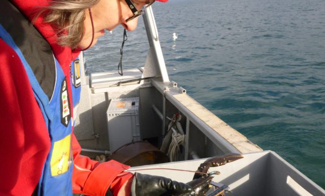 • Les homards capturés seront mesurés puis relâchés et marqués avec un élastique numéroté pour suivre les recaptures.