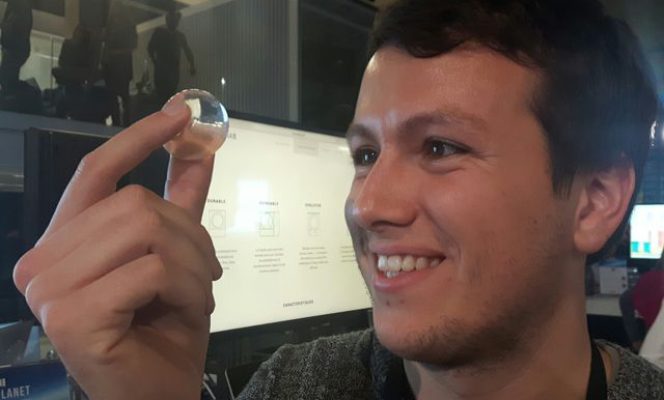 De l’eau, contenue dans une membrane composée d’alginates, donc d’algues, a été mise au point par deux français et un espagnol grâce à un financement participatif. Une idée a lire et à écouter sur le site de France Inter…