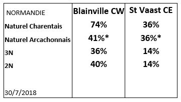 En Normandie, suite aux premiers constats de mortalité réalisés courant juin, le phénomène est apparu au cours de la seconde quinzaine de juillet sur le secteur de St Vaast la Hougue (côte Est Cotentin). Comme chaque année, un décalage allant de 15 jours à 1 mois est observé entre les deux côtes.