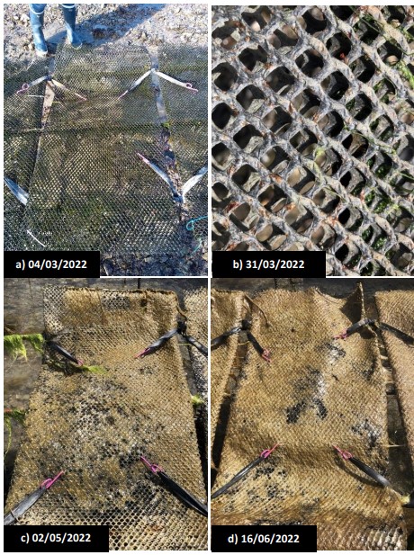 Après trois saisons de travaux, deux méthodes ont pu être évaluées. Si le captage « naturel » et le captage « provoqué » semblent envisager une production simple et techniquement facile à mettre en œuvre. Toutefois, ces méthodes restent dépendantes du captage naturel et donc de la qualité de reproduction dans le milieu. Pour pallier à ce problème, il est possible de passer par une phase d’écloserie et d’ensemencer des poches avant de les installer sur parcs ostréicoles. Cependant, cette méthode est plus complexe à mettre en œuvre. Dans tous les cas, même si des travaux supplémentaires restent nécessaires avant d’envisager une production à petite échelle, le projet PORPHYRA montre que produire cette algue rouge semble techniquement possible, notamment sur les concessions conchylicoles.