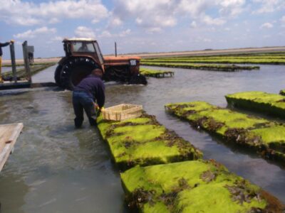 L’entéromorphe est une algue très présente sur les poches à huîtres au printemps et certains ostréiculteurs se sont interrogés sur l’exploitation potentielle de cette ressource appelée à disparaitre avec les pratiques culturales actuelles. Le projet « Entéromorphes », soutenu par la région Normandie, a permis au cours de ces 18 derniers mois, de valider techniquement et administrativement la faisabilité d’une récolte en complément de l’activité ostréicole. La valorisation de ces algues fera l’objet d’un second article.