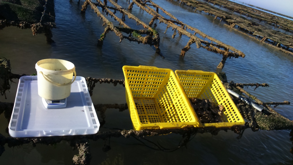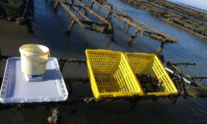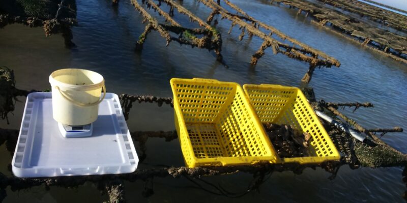 Des visites trimestrielles sur chaque site sont effectuées pour mesurer la mortalité et la croissance du lot. Des échantillons de 30 individus par classe d’âge sont prélevés et ensuite étudié au laboratoire du SMEL, des mesures et des observations sur chaque individu sont réalisées. Celles-ci permettront le calcul de différents paramètres afin de visualiser le gain de poids, le taux de remplissage, l’infestation de la coquille par le ver Polydora et la détermination de la maturité sexuelle.