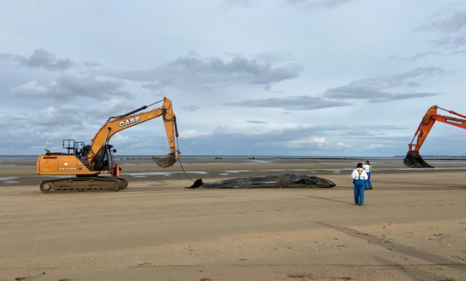 Rorqual de Bryde échoué sur la plage d’Utah Beach (Crédit photo : SMEL)