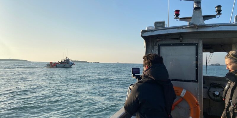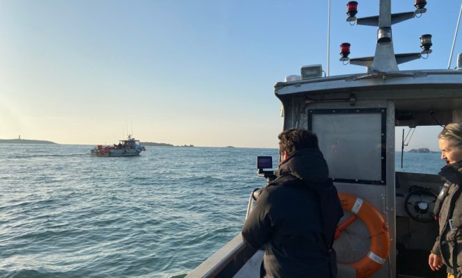 C’est sans compter sur la coopération du SMEL, sa proximité avec les professionnels, sa réactivité et sa logistique que de premières images ont pu être filmées par les journalistes au large de Granville sur la pêche du bulot et le suivi de cette ressource avec la participation de Johan Leguelinel, patron pêcheur de l’Astragale, ainsi que de Suzy Moal, Stéphanie Pétinay, Sébastien Pien et Laurence Hégron Macé scientifiques du SMEL.