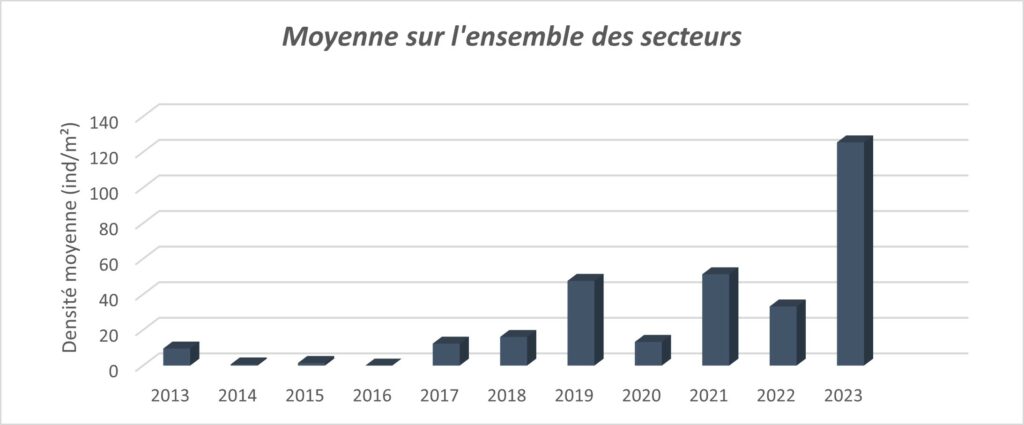 Densité moyenne relevée entre 2022 et 2024 sur l’ensemble des secteurs