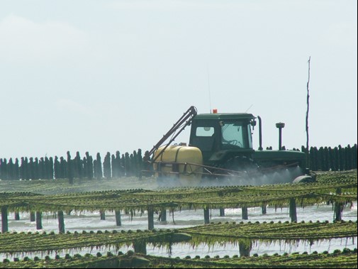 Les rejets d’eau de Javel effectués par les mytiliculteurs afin de limiter la prolifération des entéromorphes sur les parcs est une pratique susceptible d’entraîner des perturbations écologiques. La recherche bibliographique réalisée sur les effets de l’eau de Javel sur les organismes marins montre que de faibles concentrations de chlore ont de multiples effets touchant un grand nombre d’organismes.