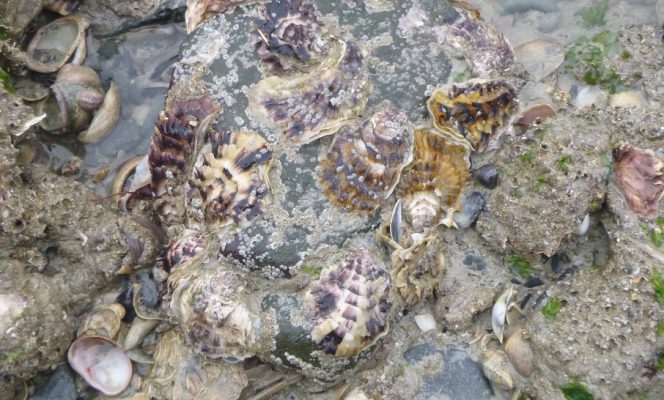 L’arrivée de juvéniles d’huîtres sauvages sur les côtes normandes, notamment sur la côte ouest du Cotentin, est suivie depuis 5 années dans le cadre du réseau HLiN (Huîtres du Littoral Normand). Généralement faible voire nul, le recrutement de nouveaux animaux a cependant connu deux pics au cours de ces cinq années : en 2013 et lors de l’été dernier où l’on a pu observer de nombreuses petites huîtres sur des secteurs très larges, comme sous la falaise de Champeaux ou le secteur de Saint Germain sur Ay.