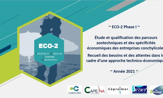 En 2021, CAPACITÉS, le Centre pour l’Aquaculture, la Pêche et l’Environnement de Nouvelle-Aquitaine (CAPENA), le Centre d’Etude et de Promotion des Activités Lagunaires et Maritimes en Occitanie (CEPRALMAR), le Syndicat Mixte pour le Développement de l’Aquaculture et de la Pêche en Pays de la Loire (SMIDAP) et Synergie Mer Et Littoral (SMEL), ont uni leurs forces pour conduire la Phase I du projet « ECO-2 ». L’association de l’ensemble de ces structures a permis d’établir un diagnostic technico-économique des entreprises des cinq bassins conchylicoles français pourvus d’un Centre Technique Régional (CTR) : Normandie, Pays de la Loire, Charente-Maritime, Arcachon-Aquitaine et Méditerranée.